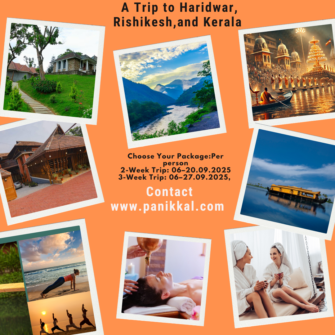Embark on a transformative journey to India, guided by a Swiss-Indian Yoga Therapist, Ayurvedic Health Counselor, and Spiritual Explorer. This is more than just a holiday—it's an intimate experience of healing, learning, and exploring the spiritual heart of India. Discover the sacred Ganges in Haridwar and Rishikesh. Immerse yourself in the serenity of Kerala’s lush backwaters, Ayurveda, and Yoga. Experience authentic spiritual practices, Ayurvedic therapies, and self-discovery.